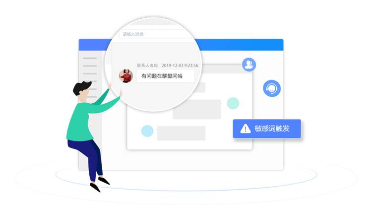 主管可查看員工和客戶的聊天內(nèi)容,并可以設(shè)置規(guī)則,對敏感行為 進(jìn)行記錄,一旦發(fā)生敏感行為,主管可及時(shí)收到提醒。
